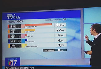 Os resultados eleitorais descreviam já a tendência socialista, que ainda se verifica atualmente, tendo o Partido Socialista ganho as eleições em todas as frentes. João Bruno da Rocha Prado era então eleito presidente da Câmara Municipal de Tavira, sendo seus vereadores Maria da Graça Santana Costa Viegas Mansinho e Joaquim Américo Fialho Anastácio e a oposição constituída por Eduardo de Vilhena Guerreiro, José Francisco Massapina Júnior e Victor Manuel Martins Baioa do Partido Social Democrata e pelo José António dos Santos do FEPU – Frente Eleitoral Povo Unido.